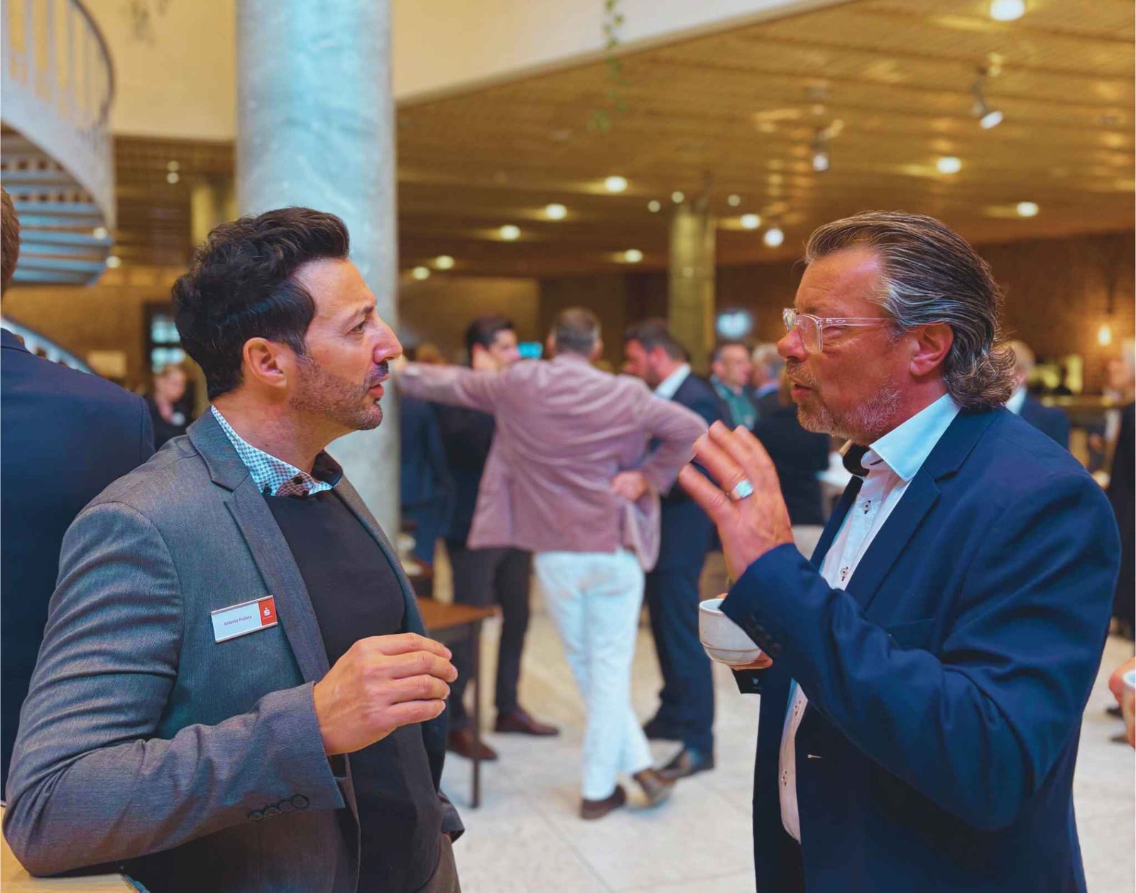 Nach einem entspannten Begrüßungskaffee eröffnete Udo Buschmann, Vorstand der Kreissparkasse Köln, gemeinsam mit Dr. Hans-Michael Brey, Vorstandsvorsitzender der Stiftung Berliner Leben, das diesjährige Bauträger- und Immobilienforum. Es folgten spannende Impulse aus der Kapitalmarktforschung: Rolf Saßen, Leiter Kapitalmarktanalyse der Kreissparkasse Köln, gab fundierte Einblicke in die Konjunktur- und Kapitalmarktperspektiven für das laufende Jahr. Anschließend stand ein spannender Einblick in die Transformation von Büroimmobilien durch Hendrik Grempe, Geschäftsführer von combine Consulting GmbH, auf dem Programm, der Einblicke dazu gab, wie man erfolgreiche Arbeitsumgebungen kreieren kann.