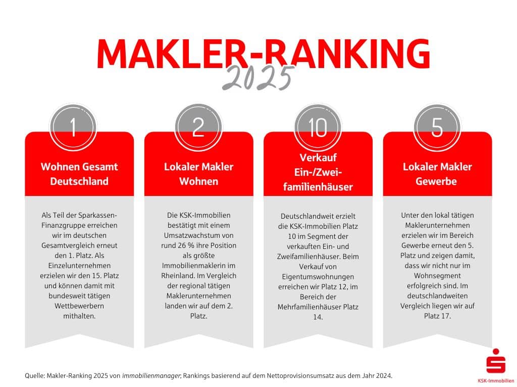 Makler-Ranking 2025: Umsatzplus sorgt für Top-Platzierungen bei KSK-Immobilien