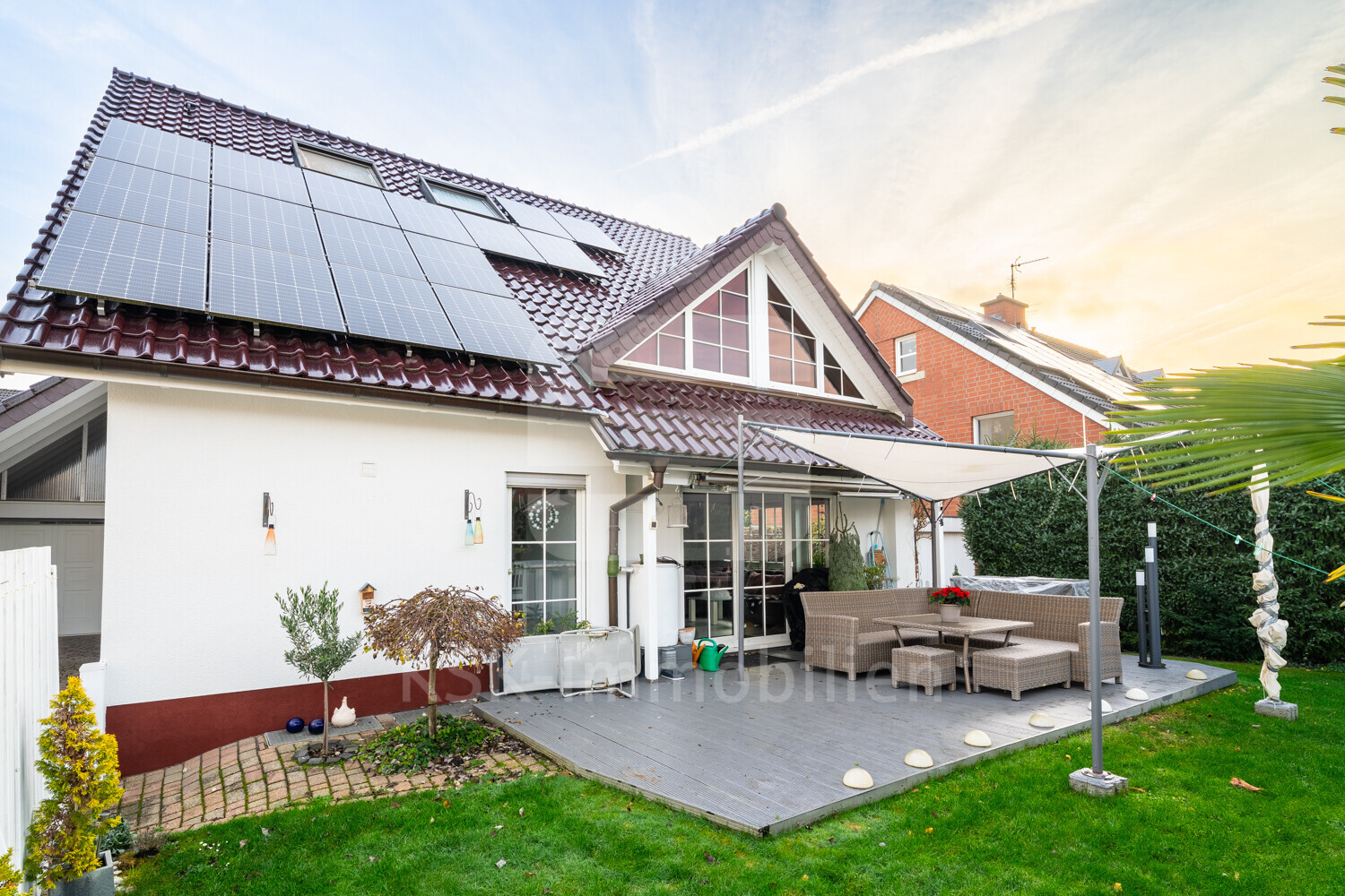 Großzügiges Familiendomizil mit Kamin, Terrassenvielfalt und vielseitigem Wohnkonzept.