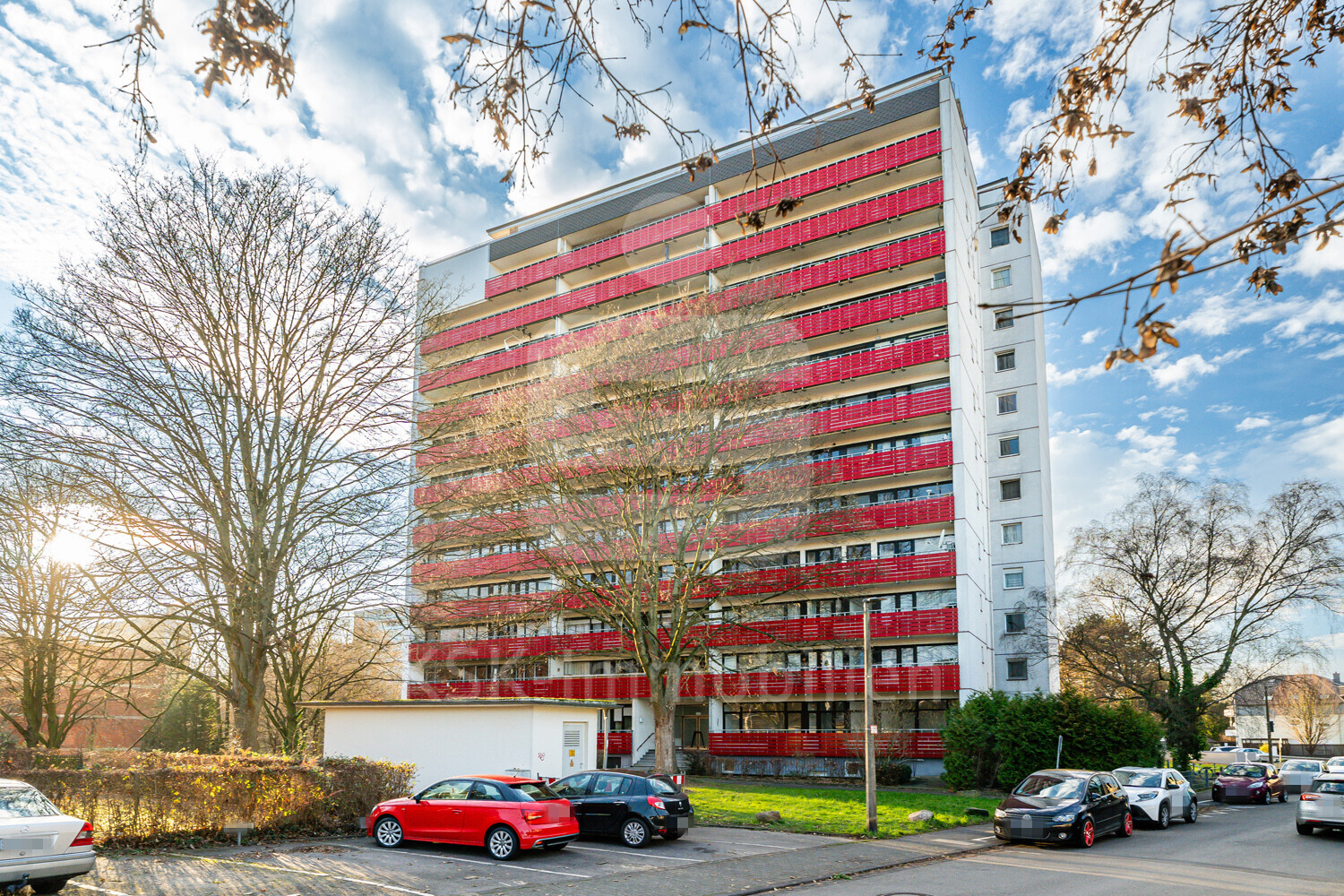 Das Gebäude wurde 1965 errichtet und verfügt über zwei Personenaufzüge. Die Wohnung gefällt insbesondere aufgrund ihrer hellen Räume mit großen Fensterflächen, die alle nach Süd-Westen ausgerichtet sind und jeweils einen eigenen Zugang auf den Balkon haben.