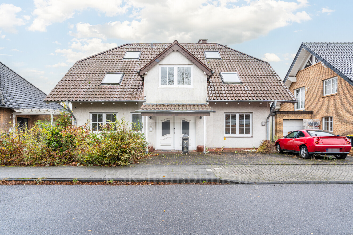 Der derzeit nicht so gepflegte Außenbereich bietet dem neuen Eigentümer ausreichend Raum für individuelle Gestaltungsmöglichkeiten. Stellplätze direkt vor dem Haus sorgen für zusätzlichen Komfort und bequemen Zugang.