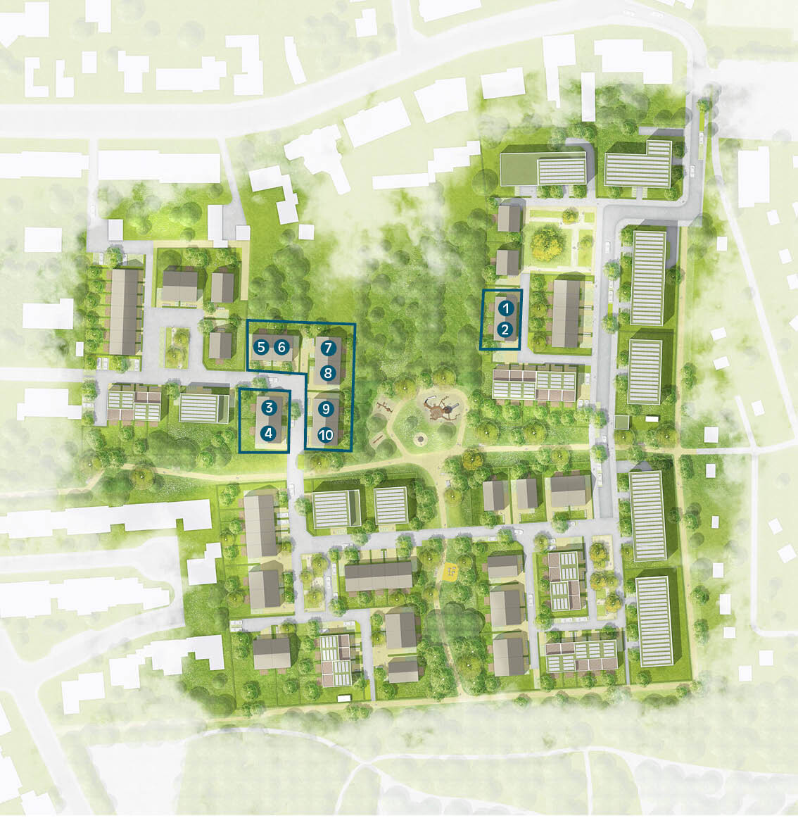 Insgesamt werden in den Leidenhausener Gärten Grundstücke für acht Einfamilienhäuser mit Wohnflächen von rund 206 m² bis 254 m² angeboten. Im neuen Wohnquartier bieten wir zudem attraktive Grundstücke, auf denen zehn Doppelhaushälften mit Wohnflächen von 176 m² bis 239 m² gebaut werden können.